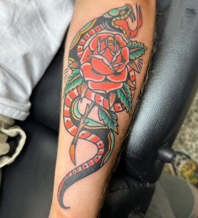 Meet Rich Lucero — a talented tattoo artist at Have Heart Tattoo in downtown Charlottesville who brings bold storytelling and refined technique to every piece. Rich is known for strong, clean line work that serves as the foundation for vibrant illustrative color tattoos, as well as crisp black-and-grey designs with meticulous detail. One client shared that “Rich Lucero did my tattoo and his line work was spot on.” Yelp With his artistic versatility and keen eye for composition, Rich can bring your custom idea to life — whether you’re picturing a dynamic full-color piece or a subtle, intricately shaded design.